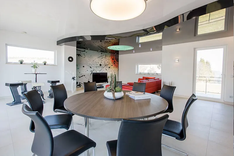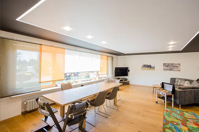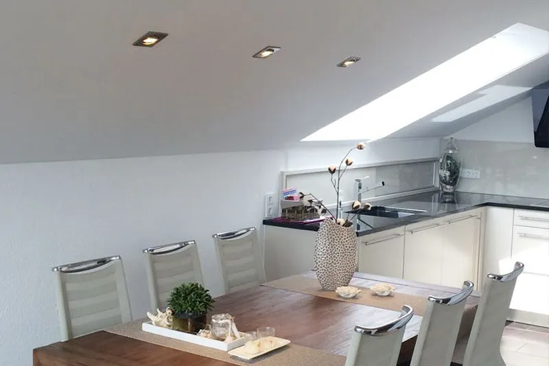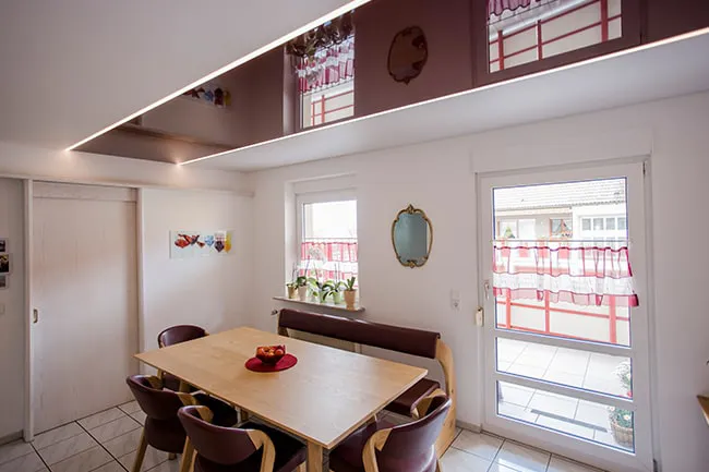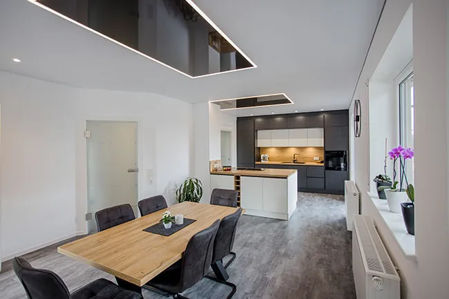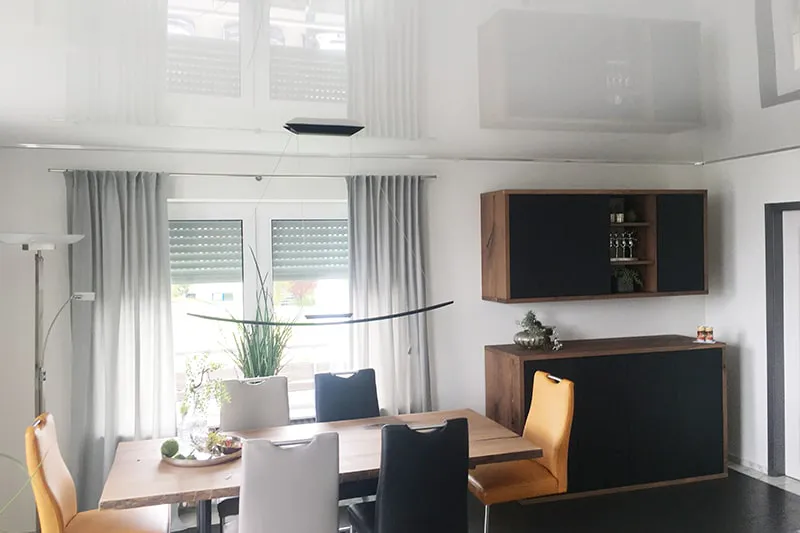 Verwandeln Sie Ihr Esszimmer in nur einem Tag – staubfrei, sauber und ohne Ausräumen Ihrer Möbel. Mit unseren hochwertigen Spanndecken und der flexiblen Gestaltung in Farbe und Form schaffen wir ein völlig neues Wohngefühl.