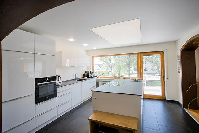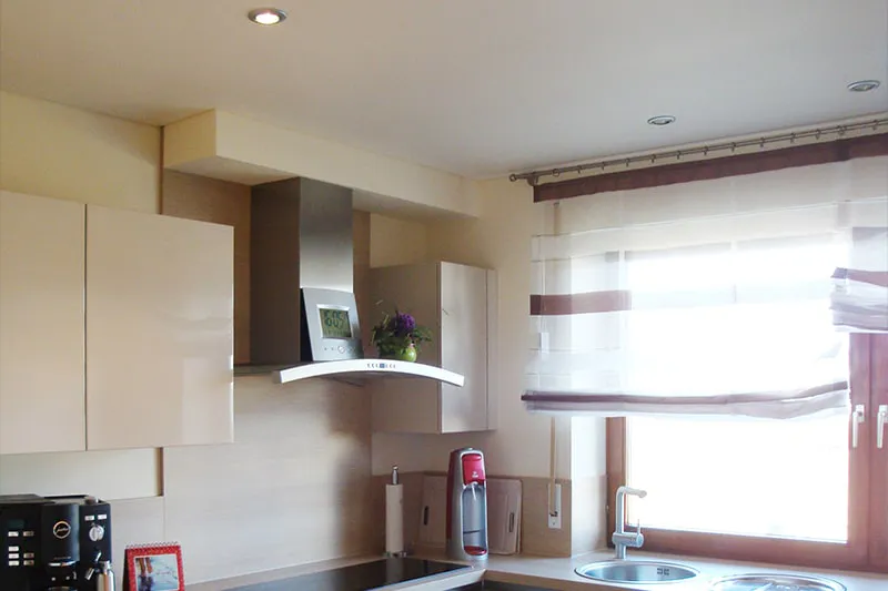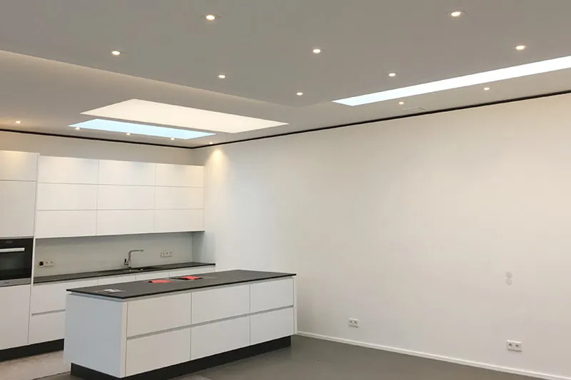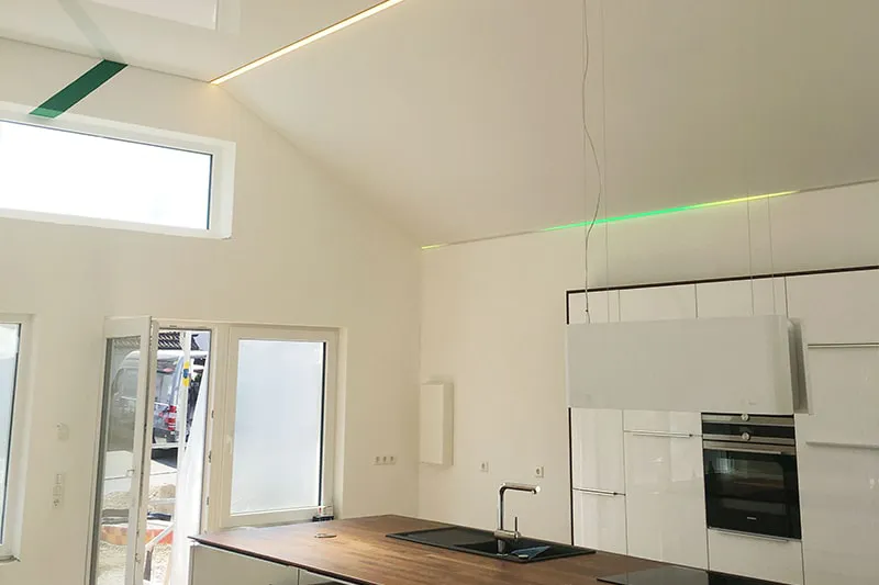 Unsere Küchen-Spanndecken sind nicht nur ästhetisch überzeugend, sondern auch funktional: Sie sind feuchtigkeitsbeständig, pflegeleicht und langlebig – ideal für die besonderen Anforderungen eines Küchenraums. Dank ihrer antistatischen Oberfläche lassen sie sich mühelos reinigen und bleiben dauerhaft makellos.