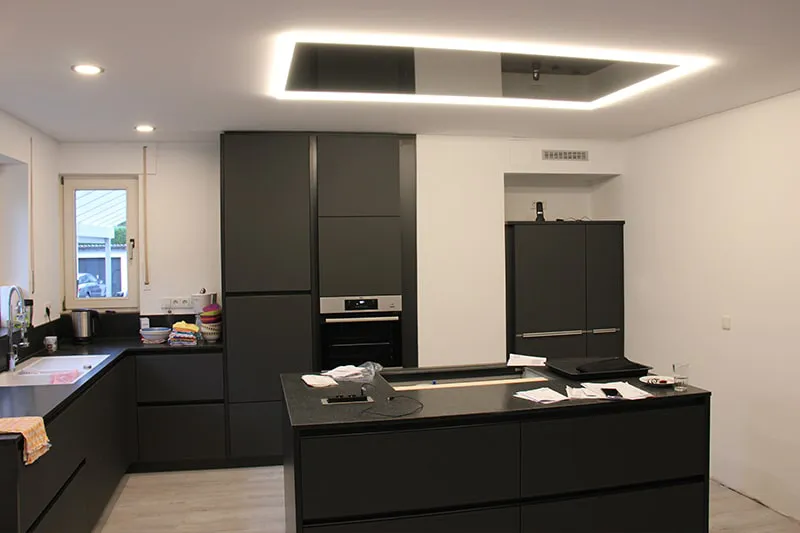 Durch das passende Deckenambiente schaffen wir eine Atmosphäre, die sowohl zum Arbeiten als auch zum Wohlfühlen einlädt. Moderne Oberflächen, individuelle Farbgestaltungen und integrierte Lichtlösungen lassen Ihre Küche in neuem Glanz erstrahlen. So entsteht ein ansprechender Arbeitsplatz, der Ihnen täglich neue Inspiration schenkt – sei es beim Kochen, beim geselligen Zusammensein oder einfach beim Genießen einer besonderen Umgebung.