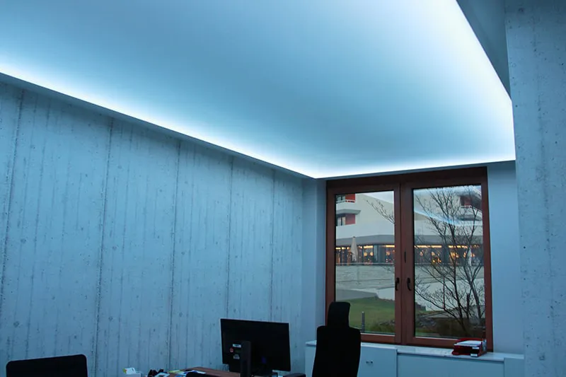 Dank einer transluzenten Spezialfolie in Kombination mit modernster LED-Technik entsteht eine gleichmäßige, flächige Ausleuchtung – ganz ohne sichtbare Lichtpunkte. Ob warmes Wohlfühllicht, tageslichtähnliche Helligkeit oder dynamische Farbwechsel: Mit individuell abgestimmten Lichtkonzepten schaffen wir für Sie ein maßgeschneidertes Lichtambiente – exakt auf Ihre räumlichen und funktionalen Anforderungen zugeschnitten.