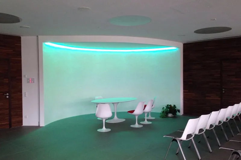 • Einbau von Lichtspanndecken im Trauungssaal und im Rathausgebäude mit Licht- und Farbsteuerung.
